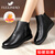 富贵鸟(FUGUINIAO)冬季女鞋短靴女牛皮中老年人妈妈鞋羊毛雪地靴棉鞋女马丁靴子女 FG409黑色[羊毛保暖] 37 [脚偏肥买大一码]
